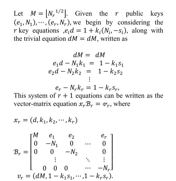 D = diagonal_matrix(ZZ,[n, int(n^(1/2)),int(n^(1+a)),1])