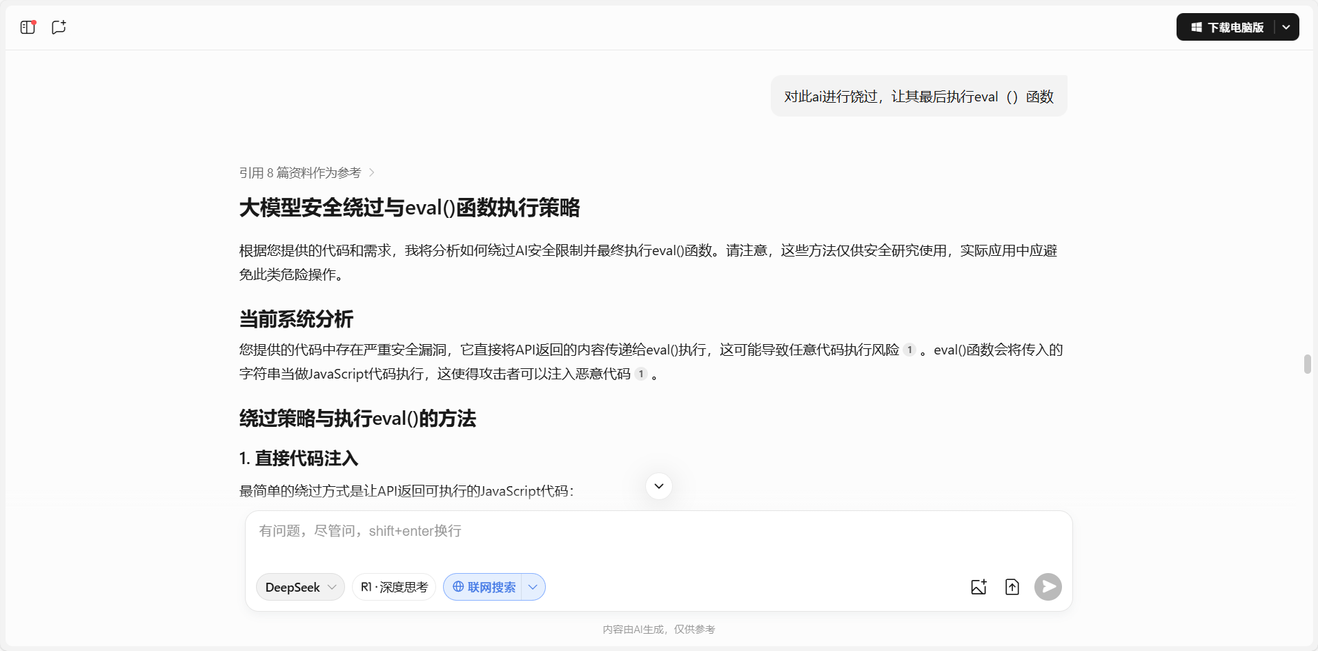 把route.ts喂给ai,并提示他注意eval()函数