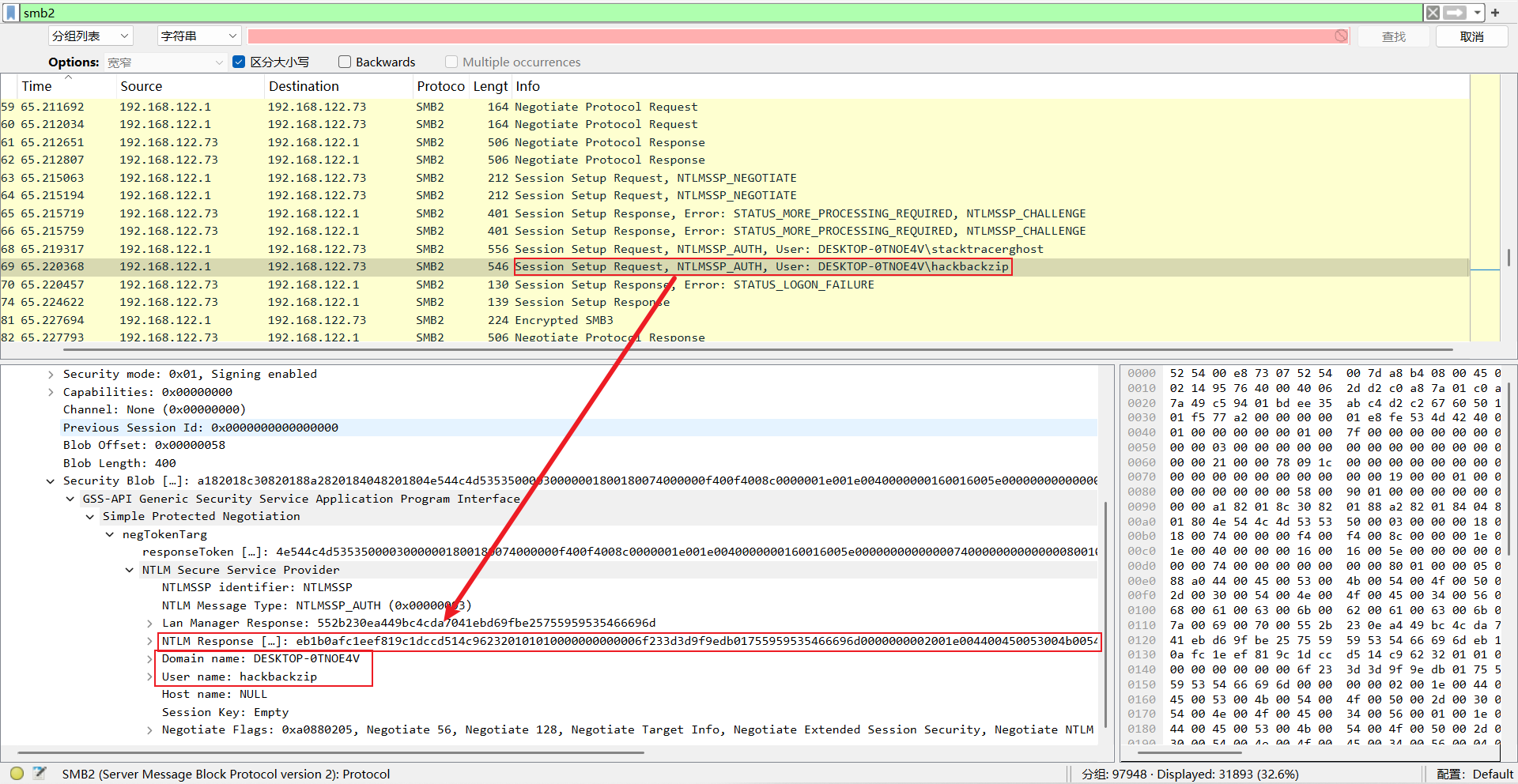寻找smb登录成功的session setup