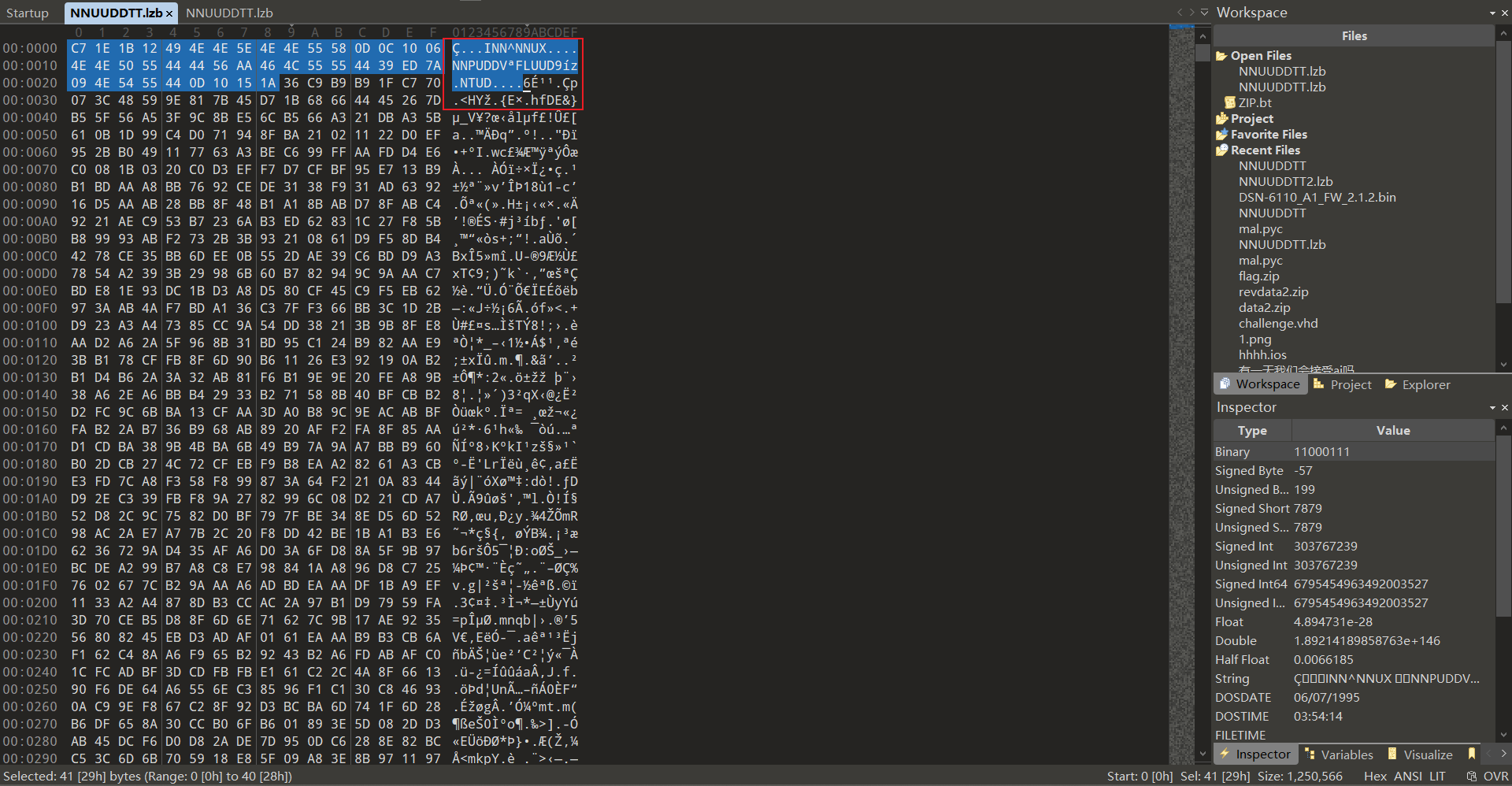解压后出现NNUUDDTT.lzb,注意提示:"与后缀无关,与文件名有关"。观察文件内容: