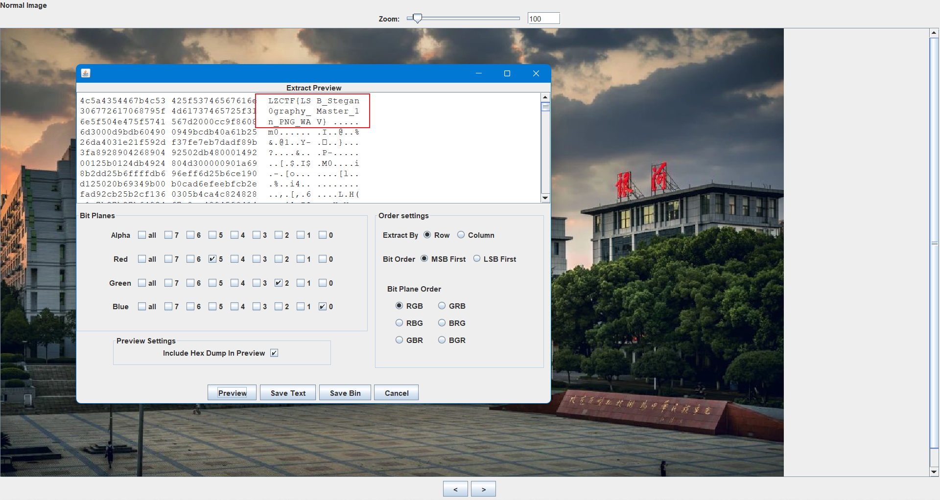 结果结尾显示LSB520,文件头位PNG,改后缀并lsb按照rgb分别5、2、0处理数据